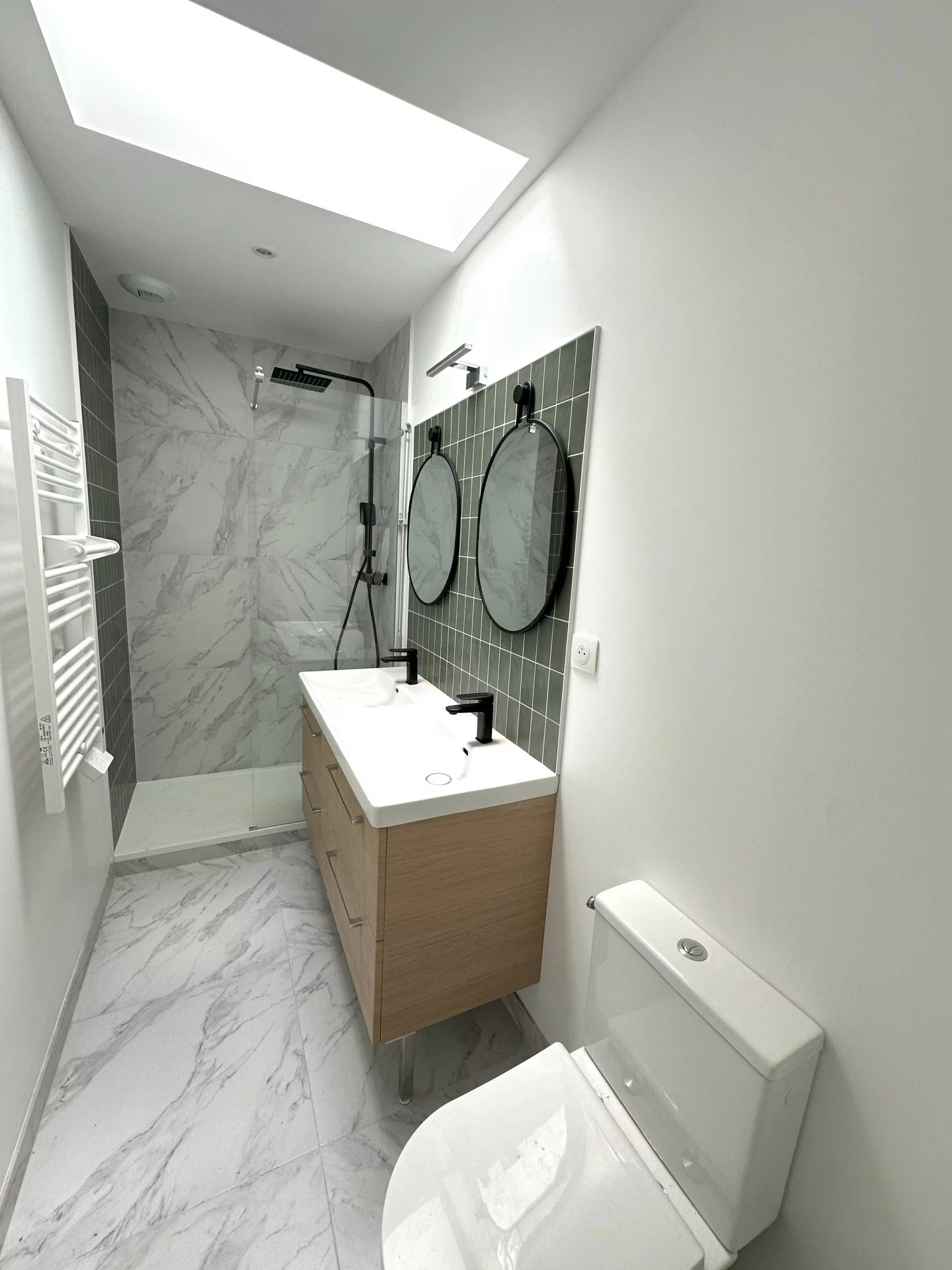 Au 1er palier avec rangement, deux chambres, salle d'eau avec toilettes
